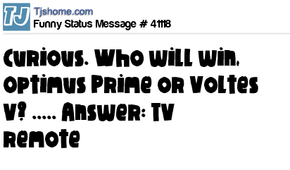 X is curious. Who will win, Optimus Prime or Voltes V? ..... Answer: TV remote
