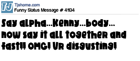X is Say alpha...Kenny...body... now say it all together and fast!! OMG! Ur disgusting!