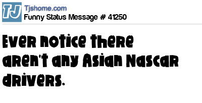X  Ever notice there aren't any Asian Nascar drivers.
