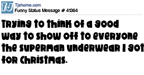 X is trying to think of a good way to show off to everyone the superman underwear I got for Christmas.