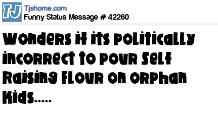 X wonders if its politically incorrect to pour Self Raising Flour on orphan kids.....