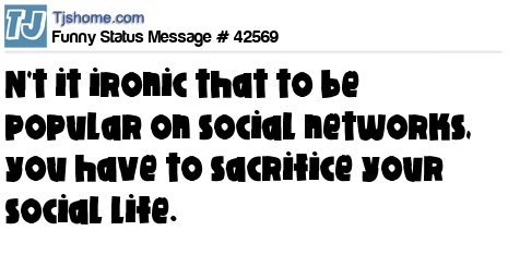 X  n't it ironic that to be popular on social networks, you have to sacrifice your social life.