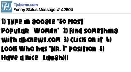 X 1) Type in google "50 Most Popular Women" 2) Find something with abcnews.com 3) Click on it 4) Look Who has "Nr. 7" position 5) Have a nice laugh)))