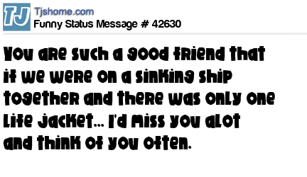 - # 27831 You are such a good friend that if we were on a sinking ship together and there was only one life jacket... I'd miss you heaps and think of you often.