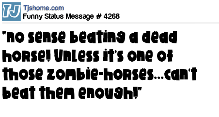 X says "no sense beating a dead horse! Unless it's one of those zombie-horses...can't beat them enough!"