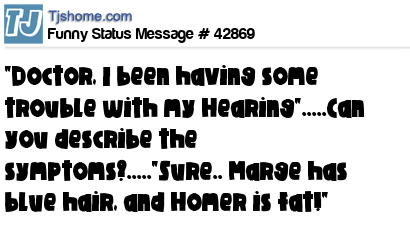 - # 191986 I went to the doctor with hearing problems. He asked “Can you describe the symptoms?” I said “Homer is a fat bald man and Marge has blue hair.”