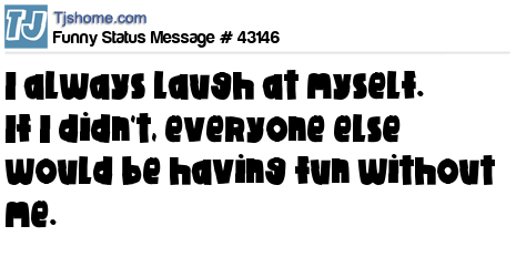 X I always laugh at myself. If I didn't, everyone else would be having fun without me.