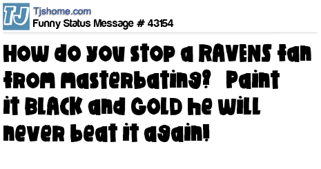 X is how do you stop a RAVENS fan from masterbating?   Paint it BLACK and GOLD he will never beat it again!