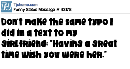 - # 46740 Don't make the same typo I did in a text to my girlfriend: "Having a great time wish you were her."