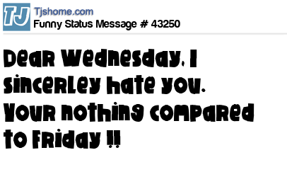 X is Dear Wednesday, I sincerley hate you. Your nothing compared to Friday !!