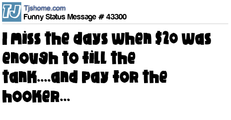 X I miss the days when $20 was enough to fill the tank....and pay for the hooker...