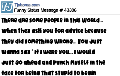 X There are some people in this world... When they ask you for advice because they did something wrong... You just wanna say " If I were you... I would just go ahead and punch myself in the face for being that stupid to begin with..."