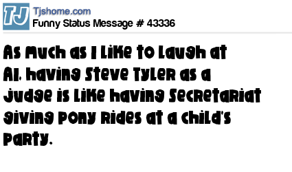 - # 32159 Says having Steven Tyler as a judge on American Idol is like having a Triple Crown Winner at Wal-Mart giving pony rides!