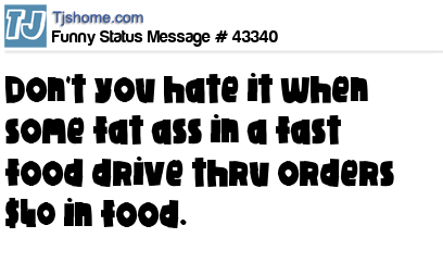 X says Don't you hate it when some fat ass in a fast food drive thru orders $40 in food.