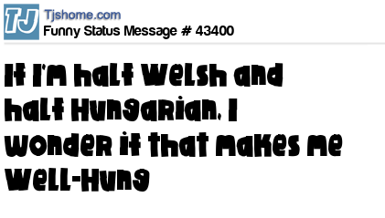 X If I'm half Welsh and half Hungarian, I wonder if that makes me Well-Hung