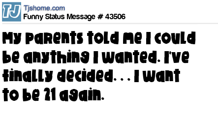 X says My parents told me I could be anything I wanted. I've finally decided. . . I want to be 21 again.