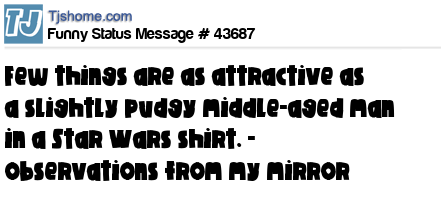 X Few things are as attractive as a slightly pudgy middle-aged man in a Star Wars shirt. - observations from my mirror