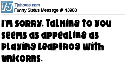 X is I'm sorry, Talking to you seems as appealing as playing leapfrog with unicorns.