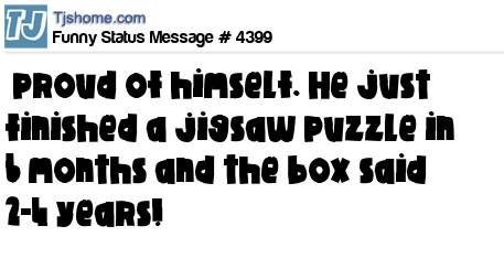 - # 30701 proud of himself. He finished a jigsaw puzzle in 6 months and the box said 2-4 years :D