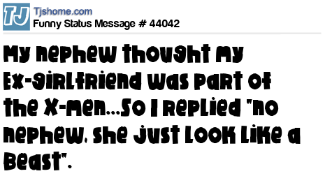 X says my nephew thought my Ex-girlfriend was part of the X-men...So I replied "no nephew, she just look like a Beast".