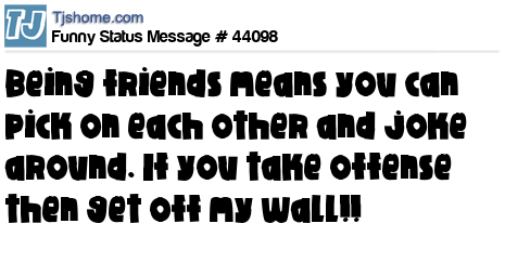 X  Being friends means you can pick on each other and joke around. If you take offense then get off my wall!!