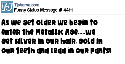 X says as we get older we begin to enter the Metallic Age.....we get silver in our hair, gold in our teeth and lead in our pants!