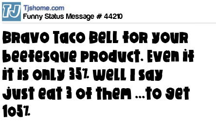 X says Bravo Taco Bell for your beefesque product. Even if it is only 35% well I say just eat 3 of them ...to get 105%