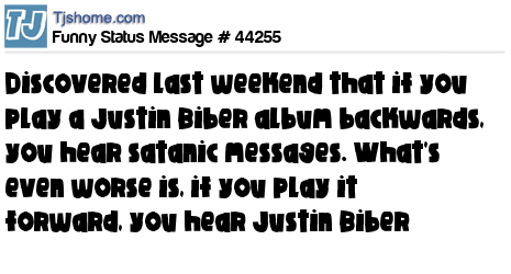 - # 37420 found out that if you play a Justin Beiber album backwards, you hear satanic messages. What's even worse is, if you play it forward, you hear Justin Bieber...