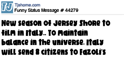 - # 44038 Just herd the cast of Jersey Shore is going to Italy next season...That's great!!! I hope they stay there. -_-