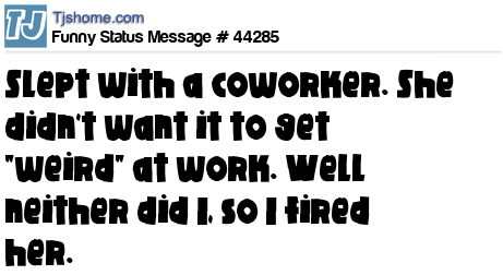 X Slept with a coworker. She didn't want it to get "weird" at work. Well neither did I, so I fired her.