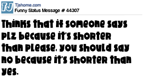 - # 94383 When people ask me "Plz" because it's shorter than "Please" I tell them "No" because it's shorter than "Yes."
