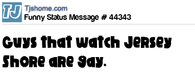 - # 29994 Mr. Dentist you can b*tch at me all day to start flossing, but the truth is I'm more likely to watch Jersey Shore than I am to floss. I'd rather have a pincone shoved up my a$$ than watch jersey shore. So unless you've got a pinecone, stop wasting my time