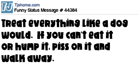 - # 180294 Treat every problem like a dog...piss on it and walk off!