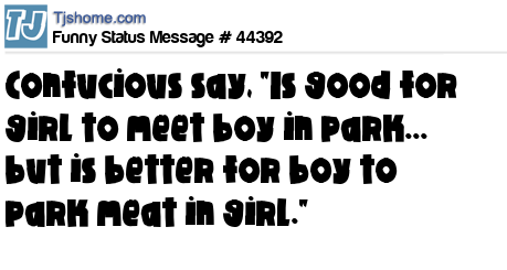 X is Confucious say, "Is good for girl to meet boy in park... but is better for boy to park meat in girl."