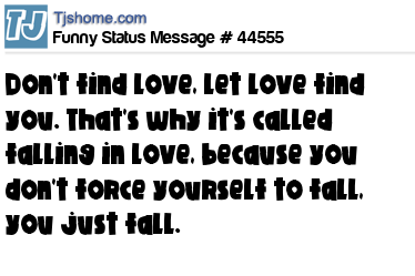 X Don't find love, let love find you. That's why it's called falling in love, because you don't force yourself to fall, you just fall.