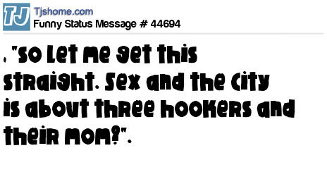 X says , "so let me get this straight. Sex and the City is about three hookers and their mom?".