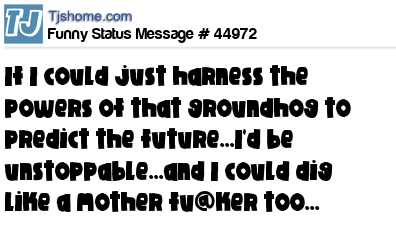 X if I could just harness the powers of that groundhog to predict the future...I'd be unstoppable...and I could dig like a mother fu@ker too...