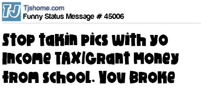 X says Stop takin pics with yo Income TAX/Grant Money from school. You Broke