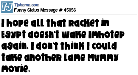 X  I hope all that racket in Egypt doesn't wake Imhotep again. I don't think I could take another lame Mummy movie.