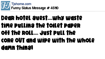 X is Dear hotel guest....why waste time pulling the toilet paper off the roll.... just pull the core OUT and wipe with the whole damn thing!
