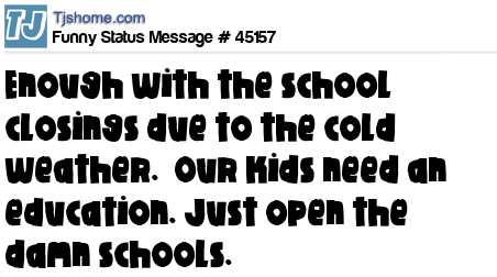 X Enough with the school closings due to the cold weather. Our kids need an education. Just open the damn schools.