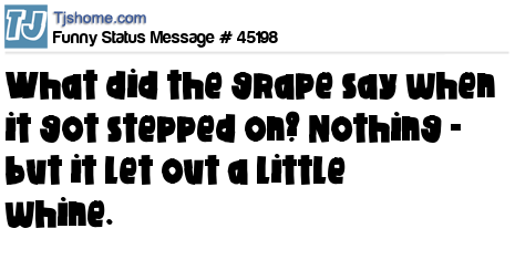 - # 164890 What does a grape say when it gets stepped on?...Nothing, it just lets out a little wine.