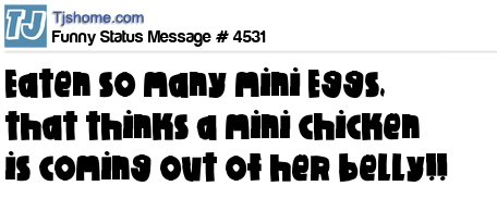 X has eaten so many mini Eggs, that thinks a mini chicken is coming out of her belly!!