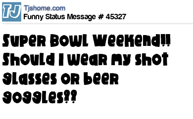 X says Super Bowl Weekend!! Should I wear my shot glasses or beer goggles??