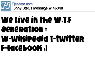 - # 74000 We live in the "WTF" generation. [W]ikipedia [T]witter [F]acebook