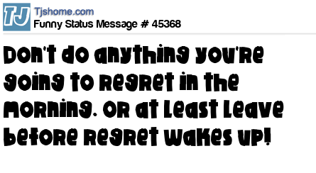 X  Don't do anything you're going to regret in the morning. Or at least leave before regret wakes up!