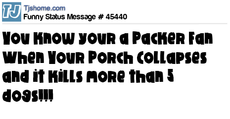 X is you know your a Packer Fan When Your Porch Collapses and it kills more than 5 dogs!!!