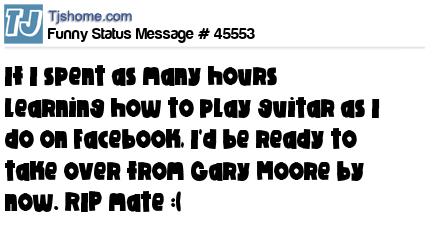 X is If I spent as many hours learning how to play guitar as I do on Facebook, I'd be ready to take over from Gary Moore by now. RIP mate :(