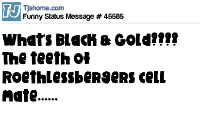 X says What's Black & Gold???? The teeth of Roethlessbergers cell mate......
