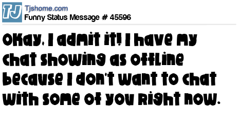 X says Okay, I admit it! I have my chat showing as offline because I don't want to chat with some of you right now.
